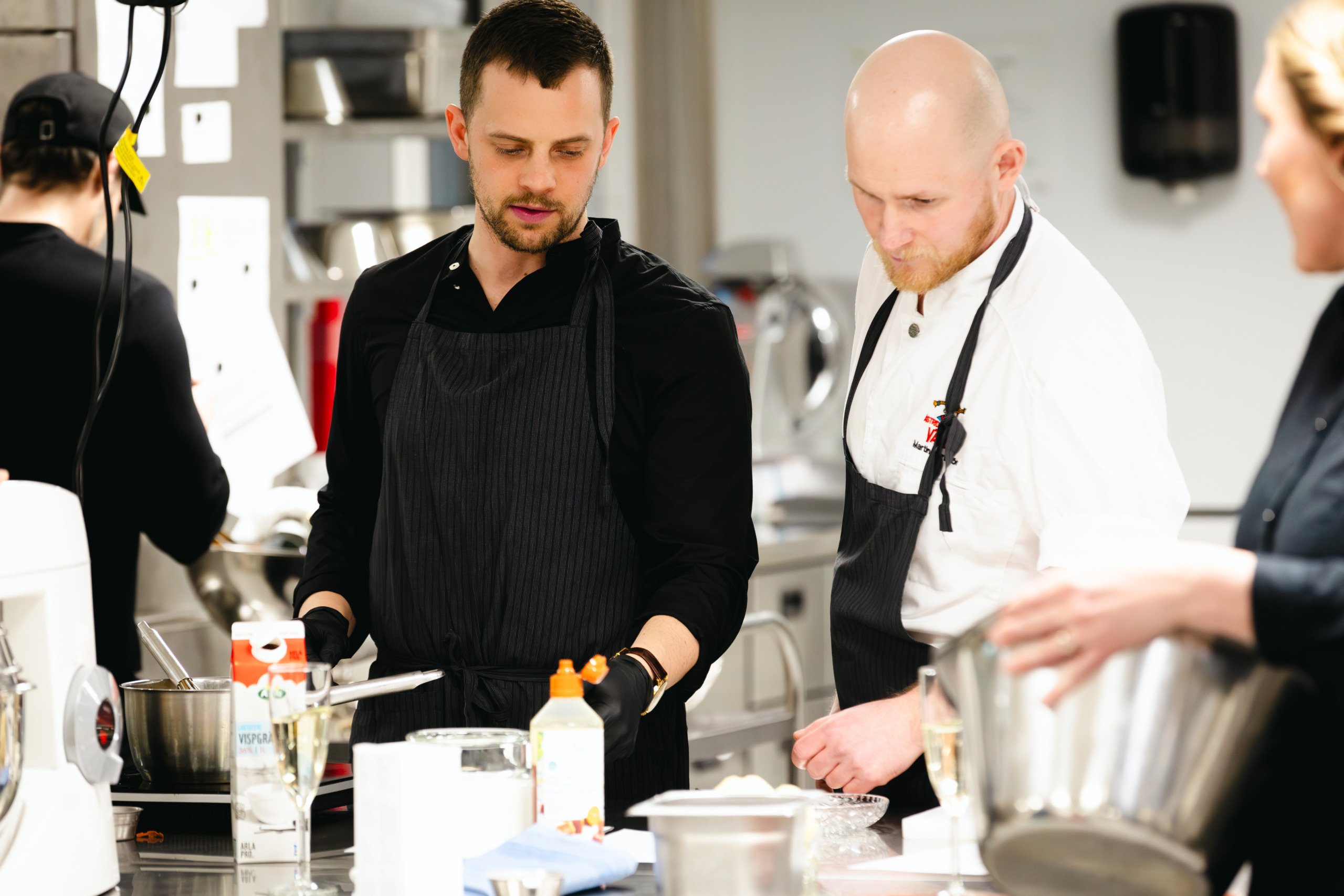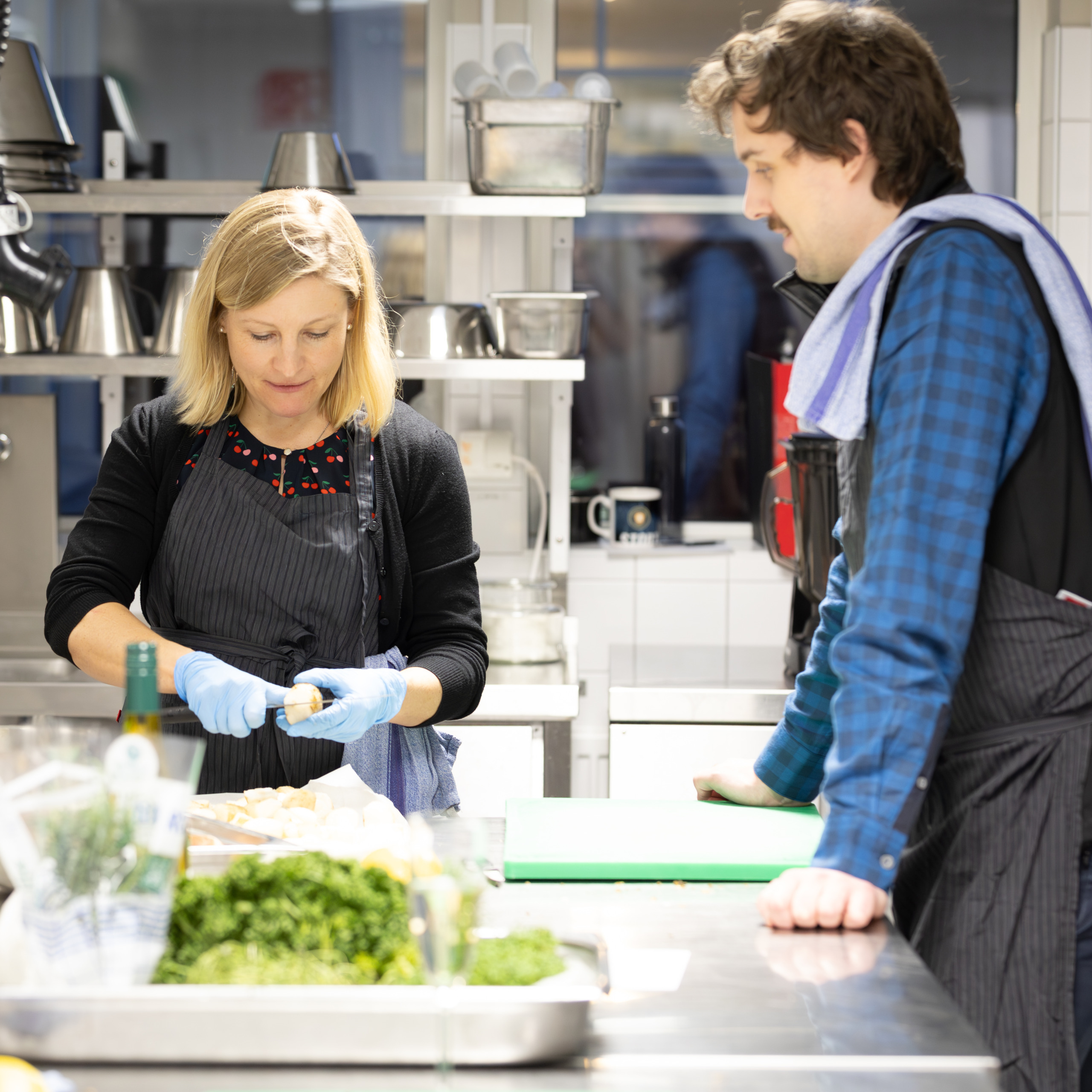 Ni samlas i vårt kök och delas in i lag. Under en begränsad tid lagar ni era rätter tillsammans. Våra kockar finns på plats och hjälper till med tips och inspiration. När maten är klar äter ni tillsammans och smakar på varandras rätter.